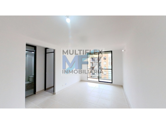 El apartamento consta de Sala Comedor, Cocina, Zona de Lavandería anexa, 1 baño y 2 habitaciones. Las dos habitaciones cuentan con Clósets. La cocina está completmente enchapada, con muebles inferiores y entrepañpos nuevos. La zona de lavandería cuenta con calentador gas. El baño cuenta con división en vidrio, lavamanos y sanitario nuevos. El piso en zona social en cerámica de primera calidad, y habitaciones en madera laminada, lo que permite un facil aseo y mantenimiento. El Conjunto Parque de Las Flores cuenta con Portería 24 horas, CCTV, Parque Infantil, Salón Comunal, Gimnasio, senderos peatonales,